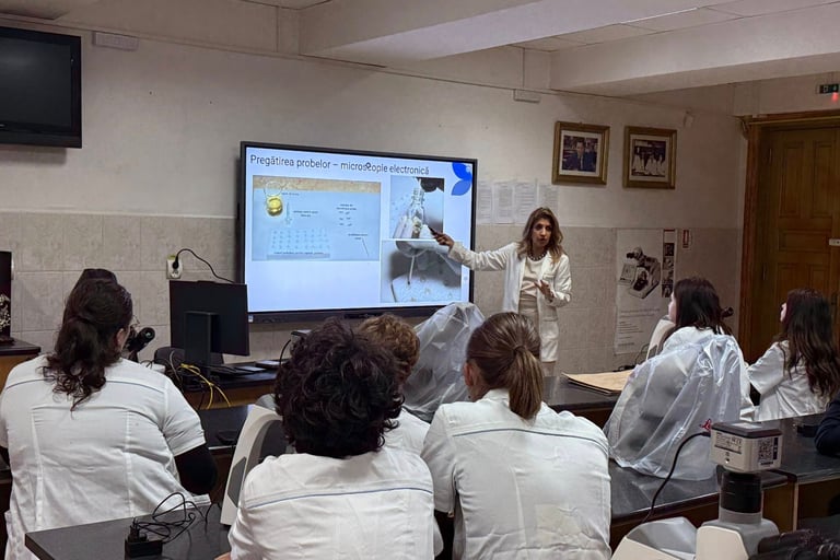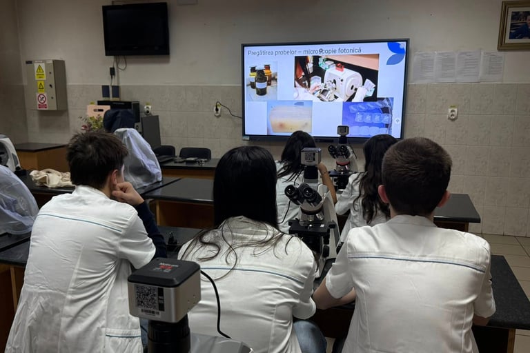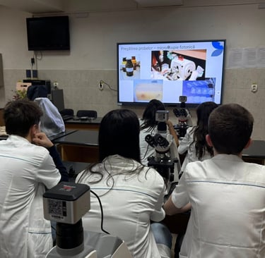Activitatea a îmbinat explicațiile teoretice cu observația directă în laborator, oferindu-le elevilor o experiență autentică de mediu universitar, stimulându-le curiozitatea științifică și interesul pentru domeniile biologiei și medicinei. A fost o experiență valoroasă, care a adus știința mai aproape de elevi și a deschis noi perspective si oportunitati in cariera.