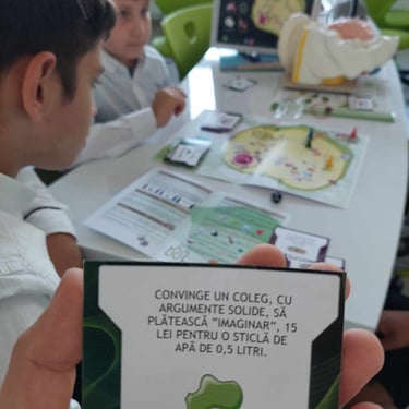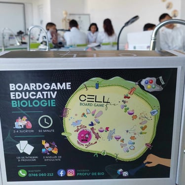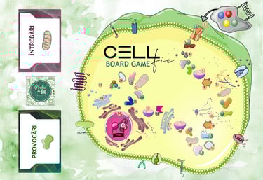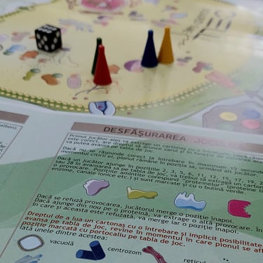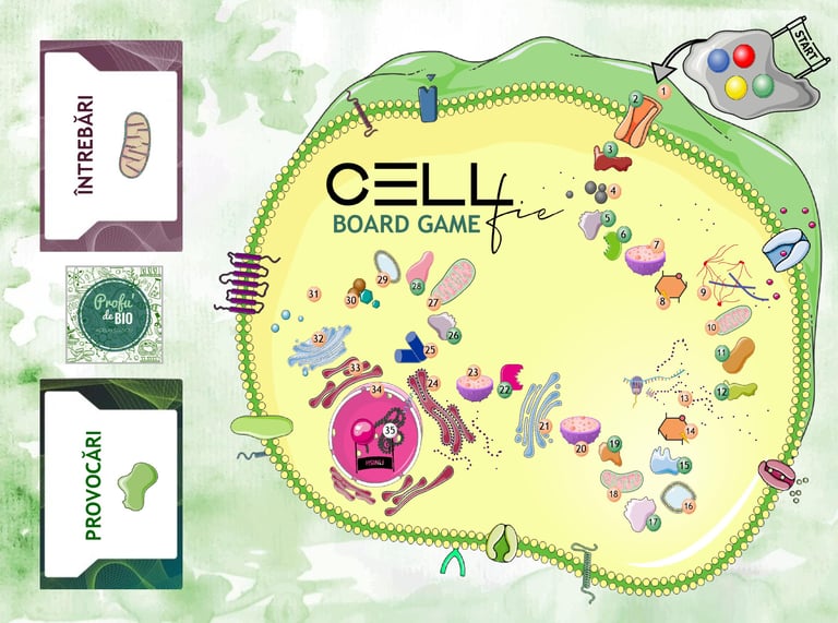 Un boardgame unic, cu tablă de joc, cartonașe cu întrebări serioase și provocări de stârnesc râsul, zar și pioni, în care vei învăța noțiuni abstracte despre ultrastructura celulară, fără să depui prea mult efort.