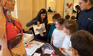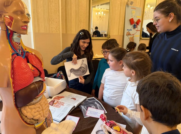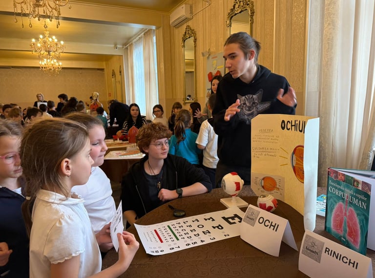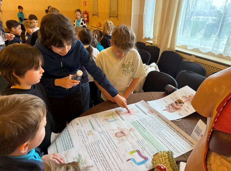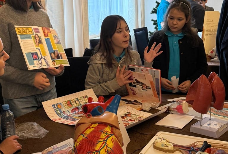 Momentul central al activității a fost organizat sub forma unui tur de galerie. Elevii din clasele primare au trecut, rând pe rând, pe la fiecare „stand”, unde au fost întâmpinați de prezentatorii noștri entuziaști. A fost mai mult decât o simplă prezentare: cei mici au pus întrebări, au atins machetele, au ascultat explicații adaptate nivelului lor si au făcut legătura între propriul corp și informațiile aflate.