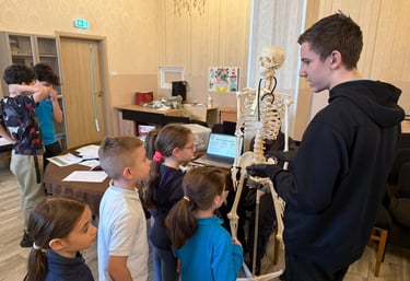 Atmosfera a fost una relaxată, prietenoasă și plină de curiozitate. Elevii mai mari au învățat să vorbească pe înțelesul copiilor, iar cei mici au descoperit cât de fascinant este corpul uman.