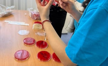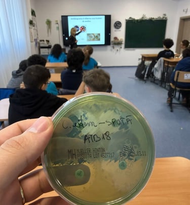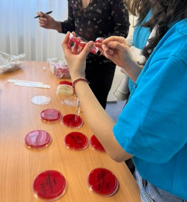 Faptul că am putut cultiva bacterii în laborator, cu probe prelevate de pe bani, telefon, mâini și suprafețe ale sălii de clasă a fost o experiență unică. Aceasta a consolidat cunoștințele teoretice prin contact direct cu realitatea experimentală, stimulând interesul pentru domeniul biologiei.