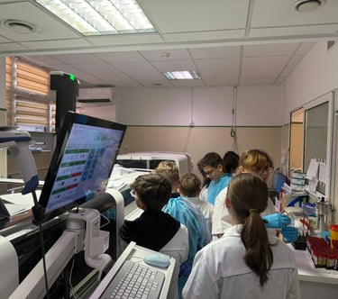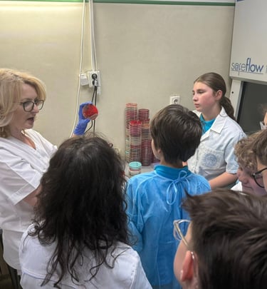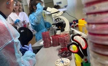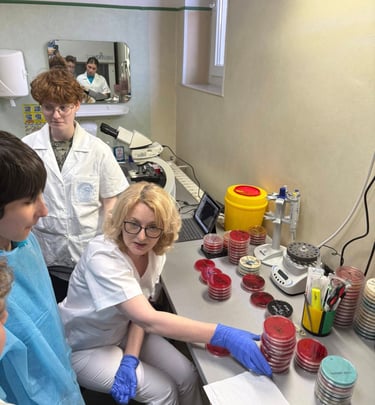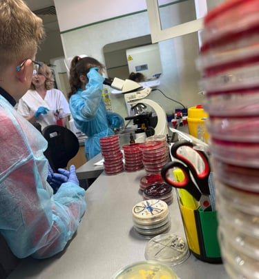 Activitatea a avut ca scop familiarizarea elevilor cu fluxul de lucru specific laboratoarelor dintr-un spital și mai ales al compartimentului de microbiologie. Am observat diferite culturi bacteriene pe diverse medii de cultură, înțelegând etapele necesare pentru obținerea rezultatelor de laborator.